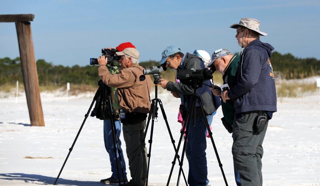 In 2024, two new species were added to the list of birds LPCA has observed at Camp Helen. The new species were the Gray-Cheeked Thrush and the Whimbrel. Both species were observed in April. The Gray-Cheeked Thrush is an upland bird most often observed close to the ground in thickets, while the Whimbrel is a large, brown shorebird with a long, decurved bill. Although not a new species for the list, a Magnificent Frigatebird was observed in May 2024. As the birders were leaving the beach that Saturday morning, one commented that she had never seen a Magnificent Frigatebird in Bay County. The group stopped and turned to look at the beach for one last look. Emily Ellis pointed to the sky. There it was soaring in the air, the Magnificent Frigatebird. These rarely seen birds are always a sight to behold.